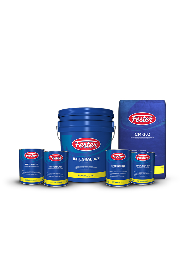 Los reparadores Fester ofrecen soluciones a elementos constructivos que eventualmente puedan presentar fisuras y agrietamientos, fugas y filtraciones de agua, lo que tendrá consecuencias como el debilitamiento de la estructura, rápido deterioro del concreto, corrosión del acero de refuerzo.